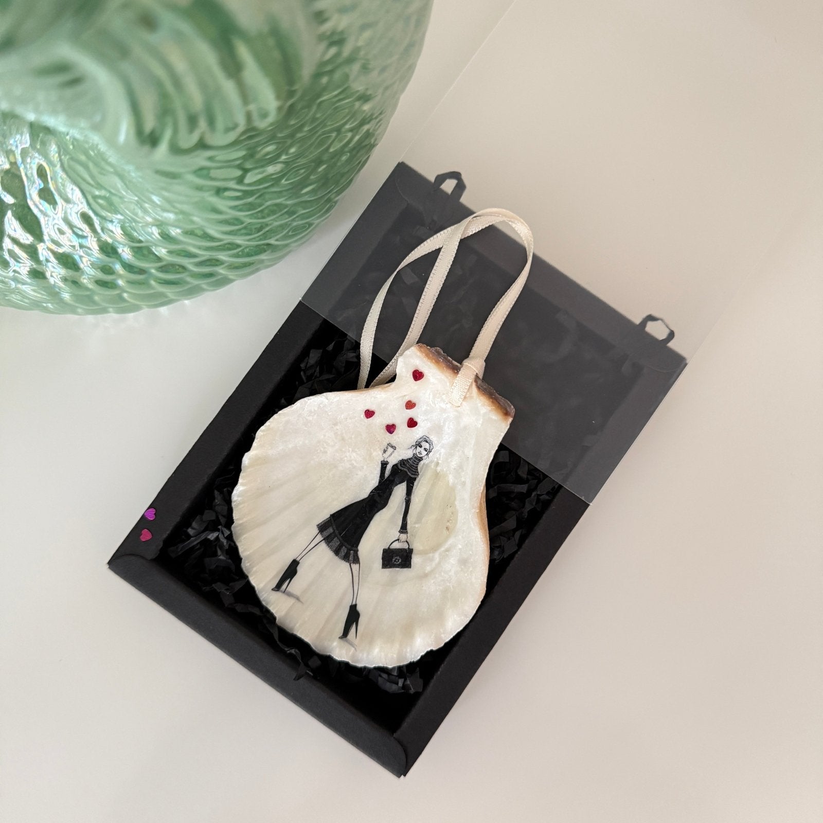 Coastal Charm „Valentine to go", echter Muschelanhänger mit Herz & Herzen veredelt