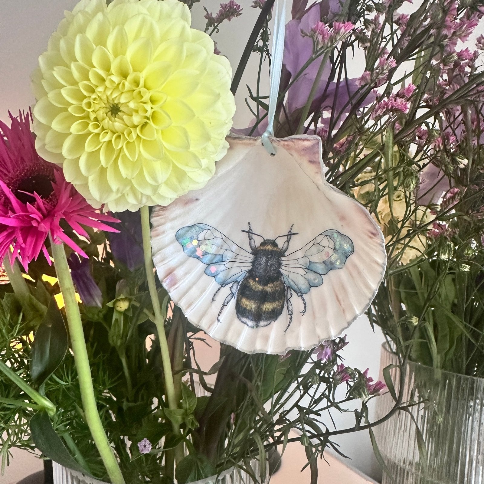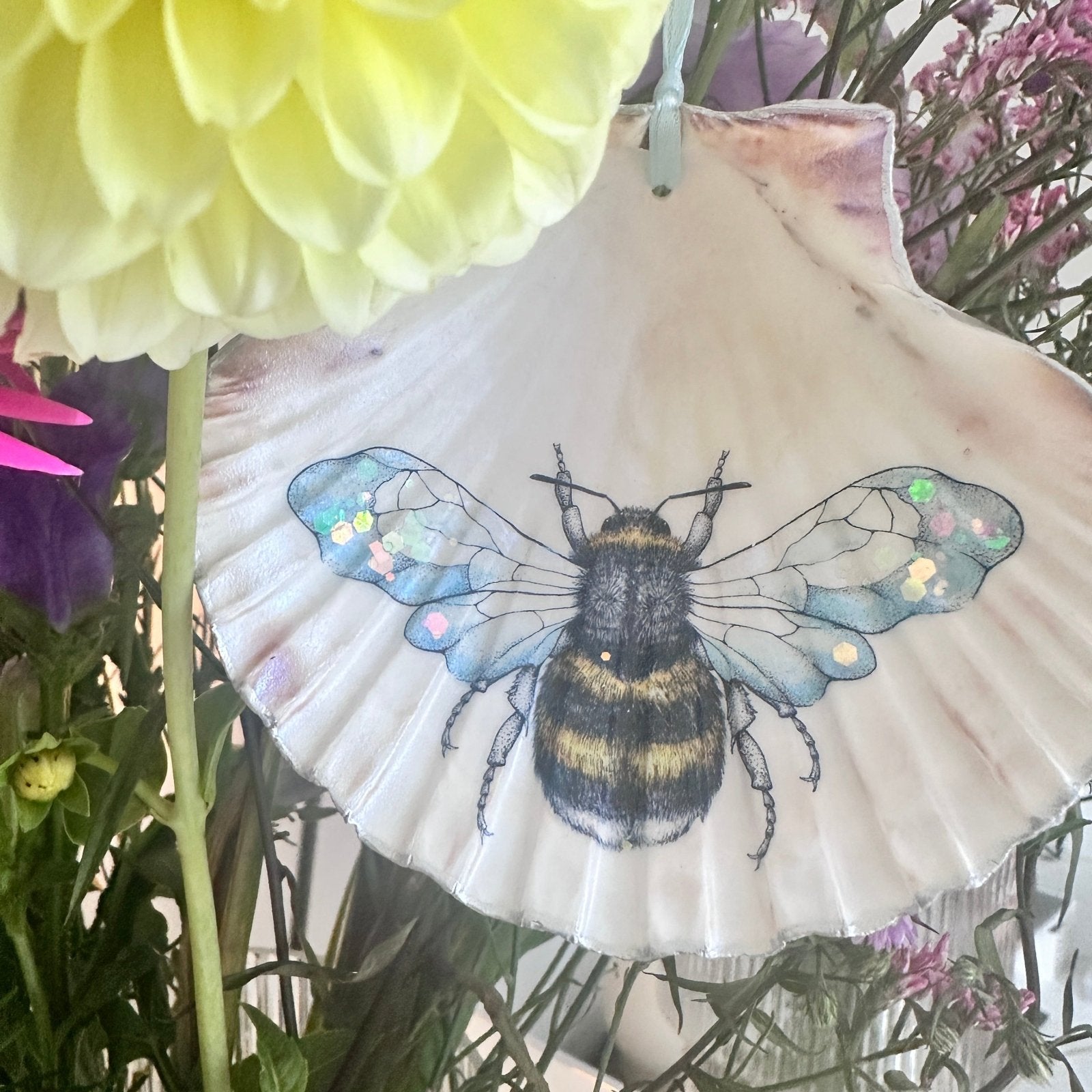 Handveredeltes Deko - Objekt: Dekoanhänger "Biene" mit Glitzer - Flügeln von ei - nzigartig