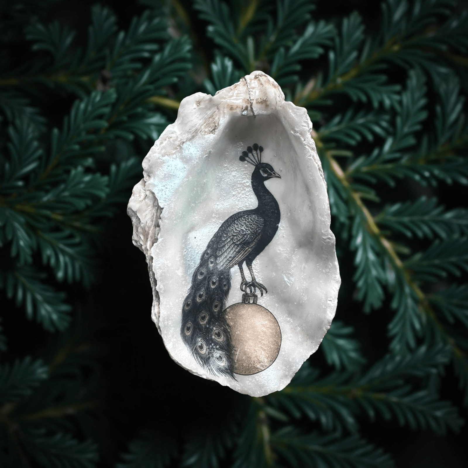 Starball ist die Deko dazu – ein königlicher Pfau, der elegant auf einer funkelnden Weihnachtskugel balanciert und sie wie ein Juwel krönt.