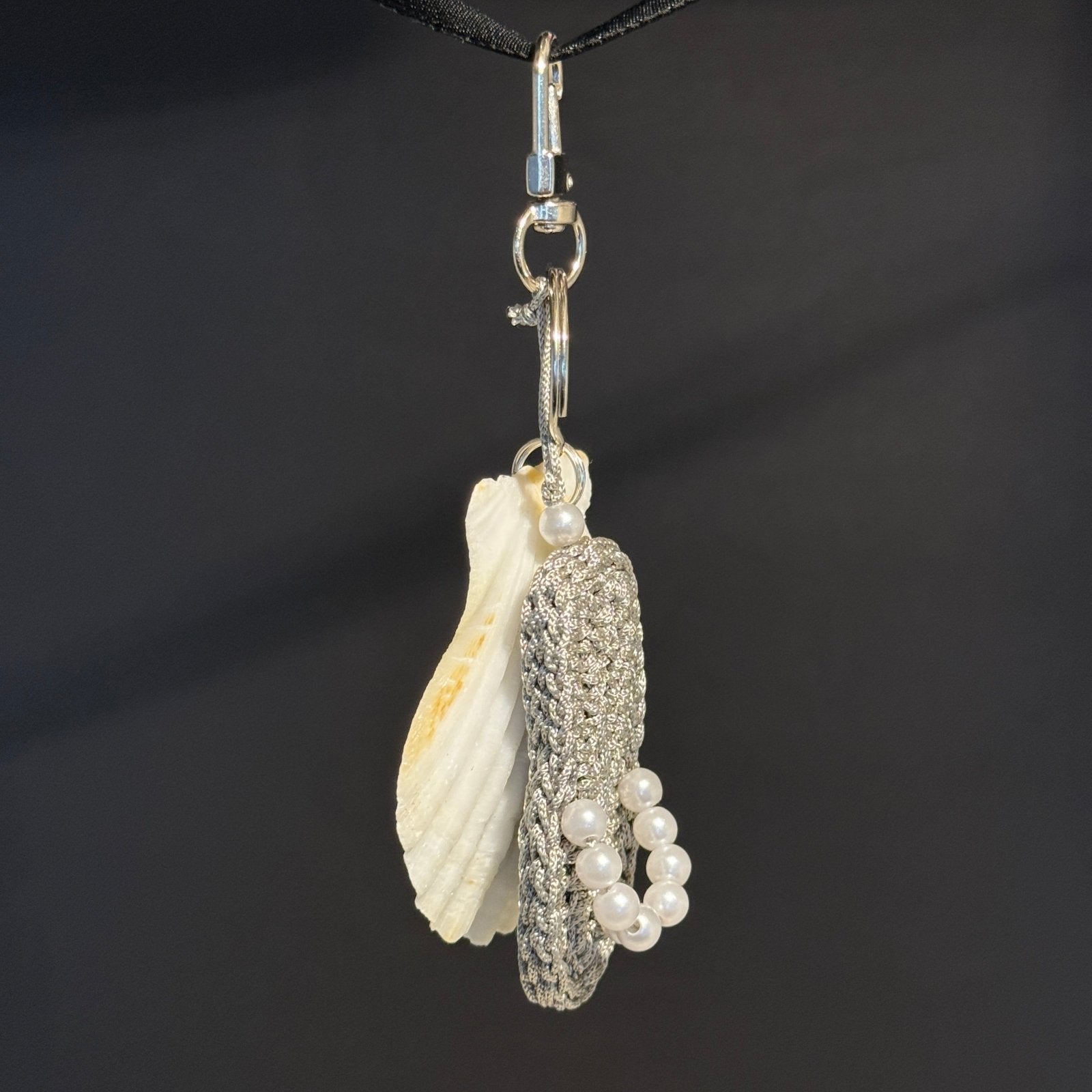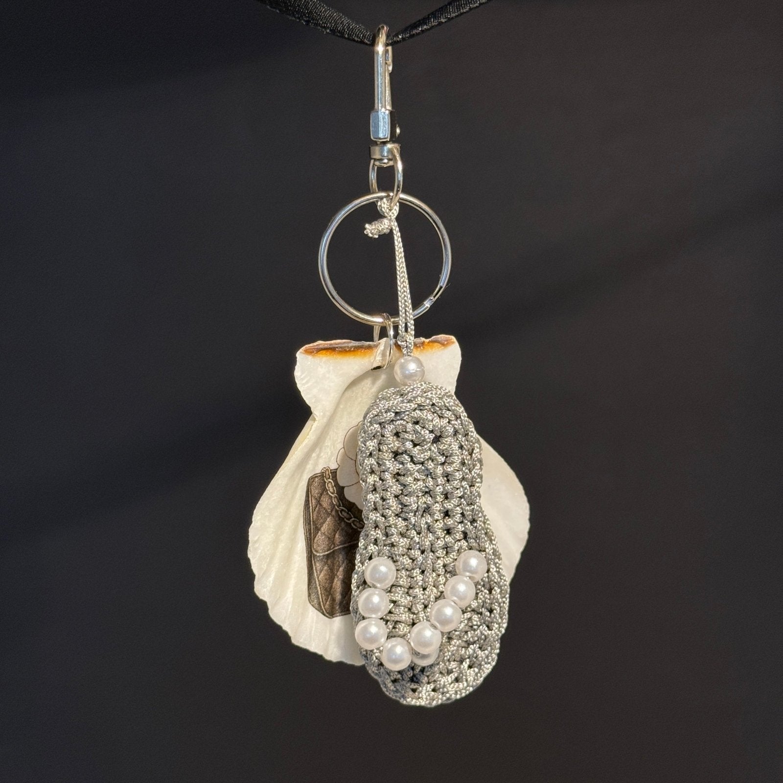 Handveredeltes Deko - Objekt: Beachwalk "Carmelias Dreambag", echte Muschel inkl. Häkel - Flipflop I SILBER von Tiffy Tastique von ei - nzigartig