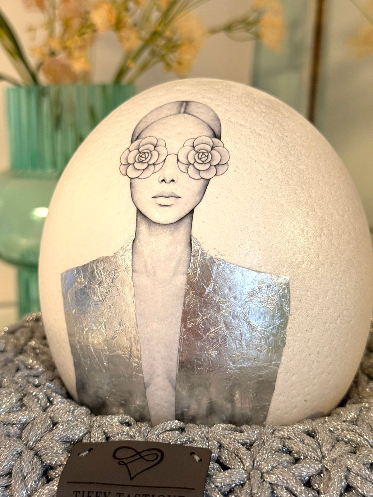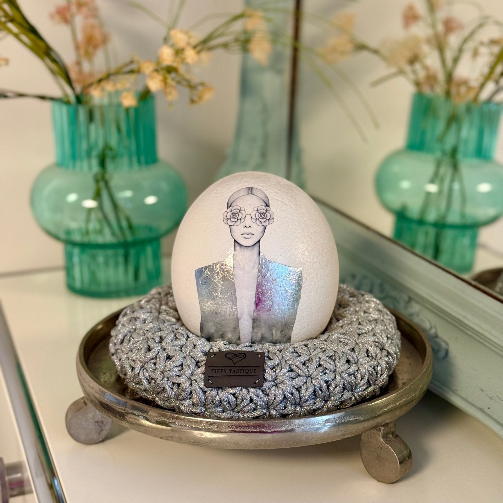 Straußenei "Metallica Camélia", inkl. Glam Häkel-Kranz von Tiffy Tastique