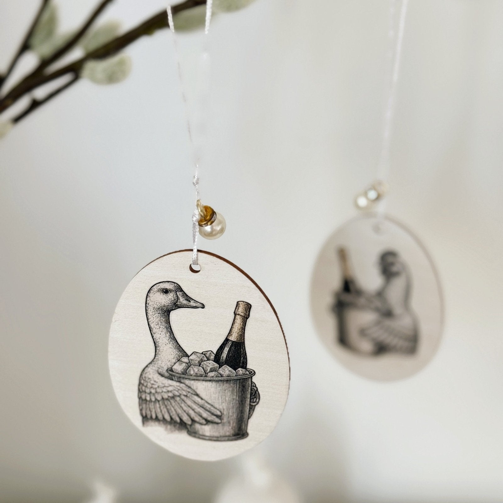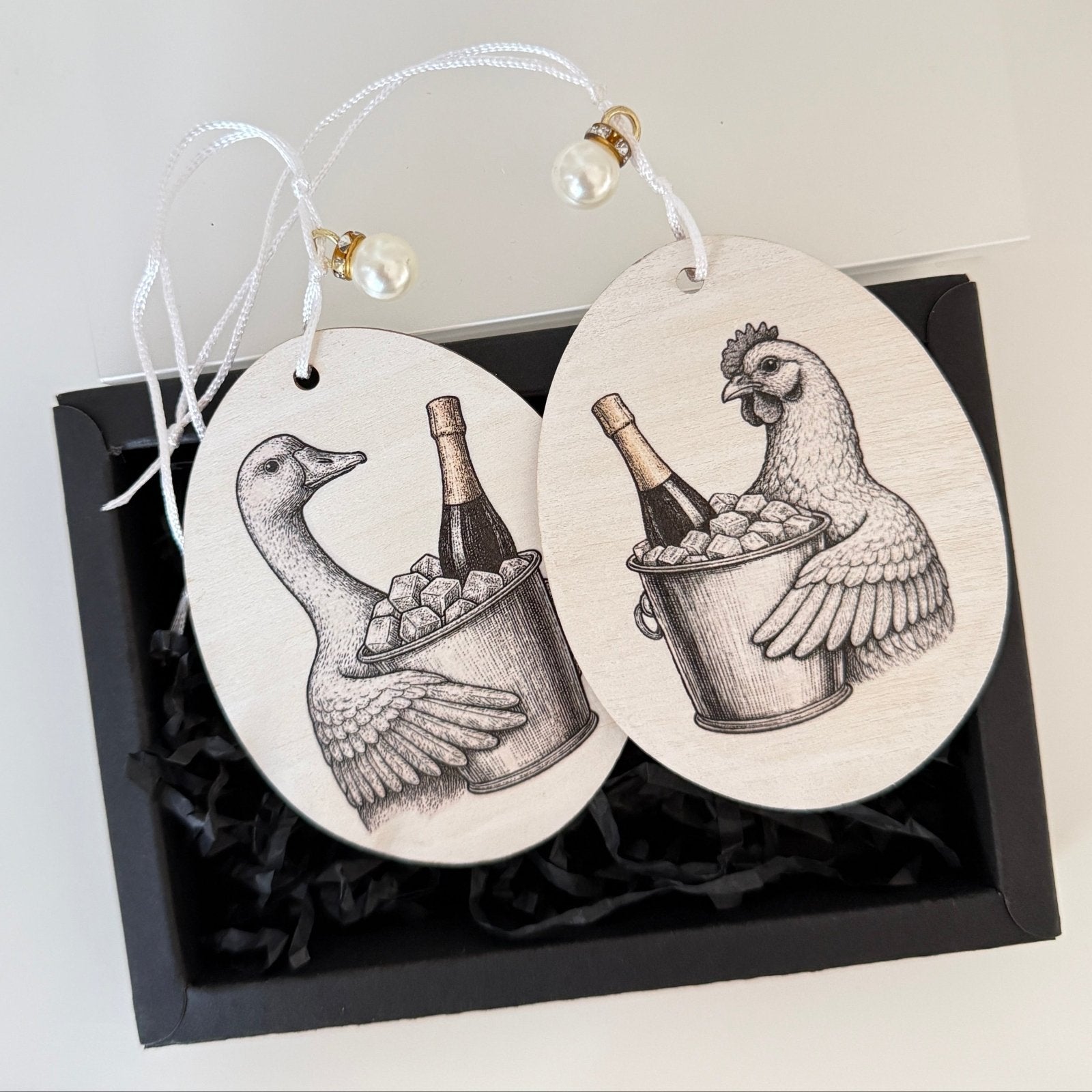 2er Set Classy Charms „Schnatteria“, Holzanhänger mit Perl-Charm