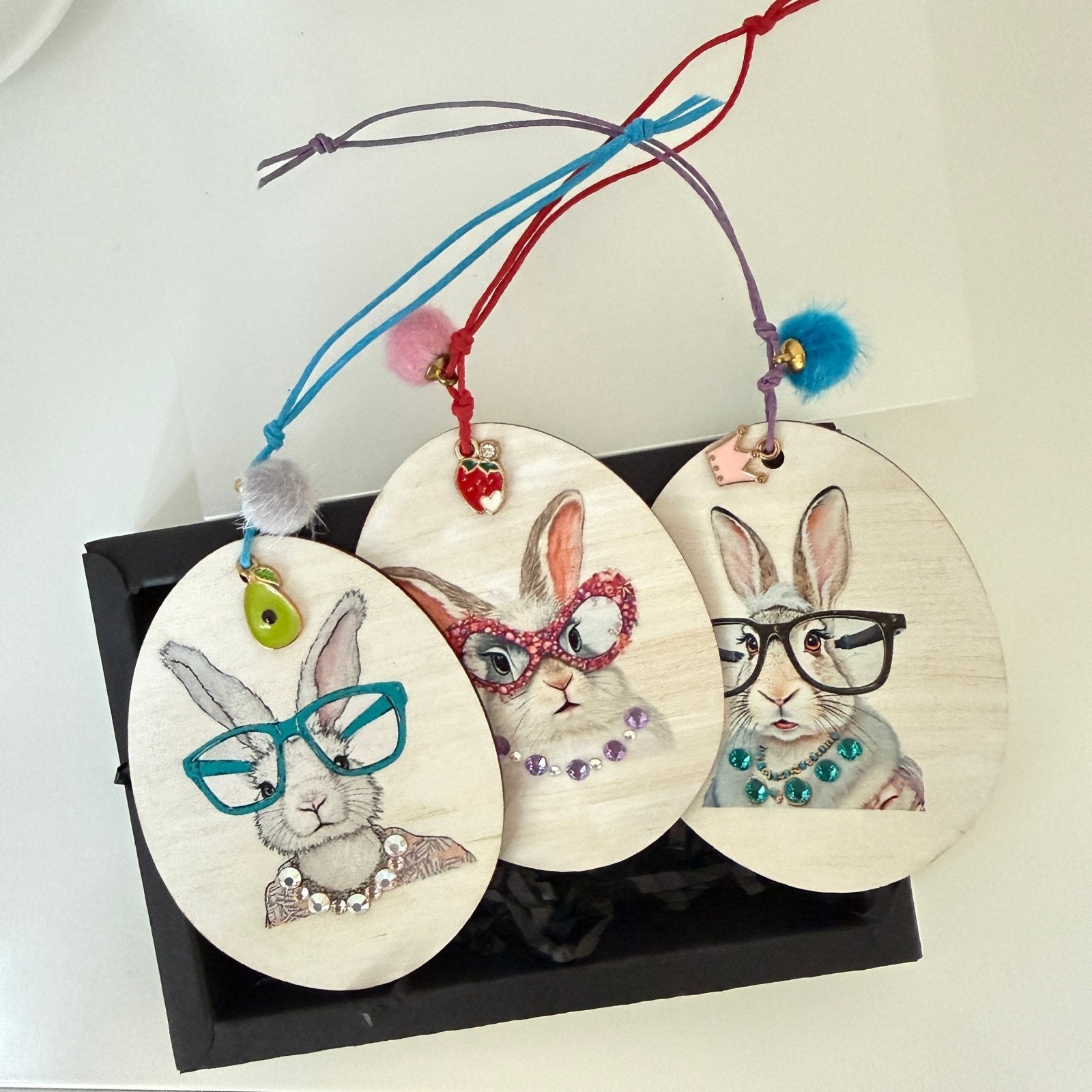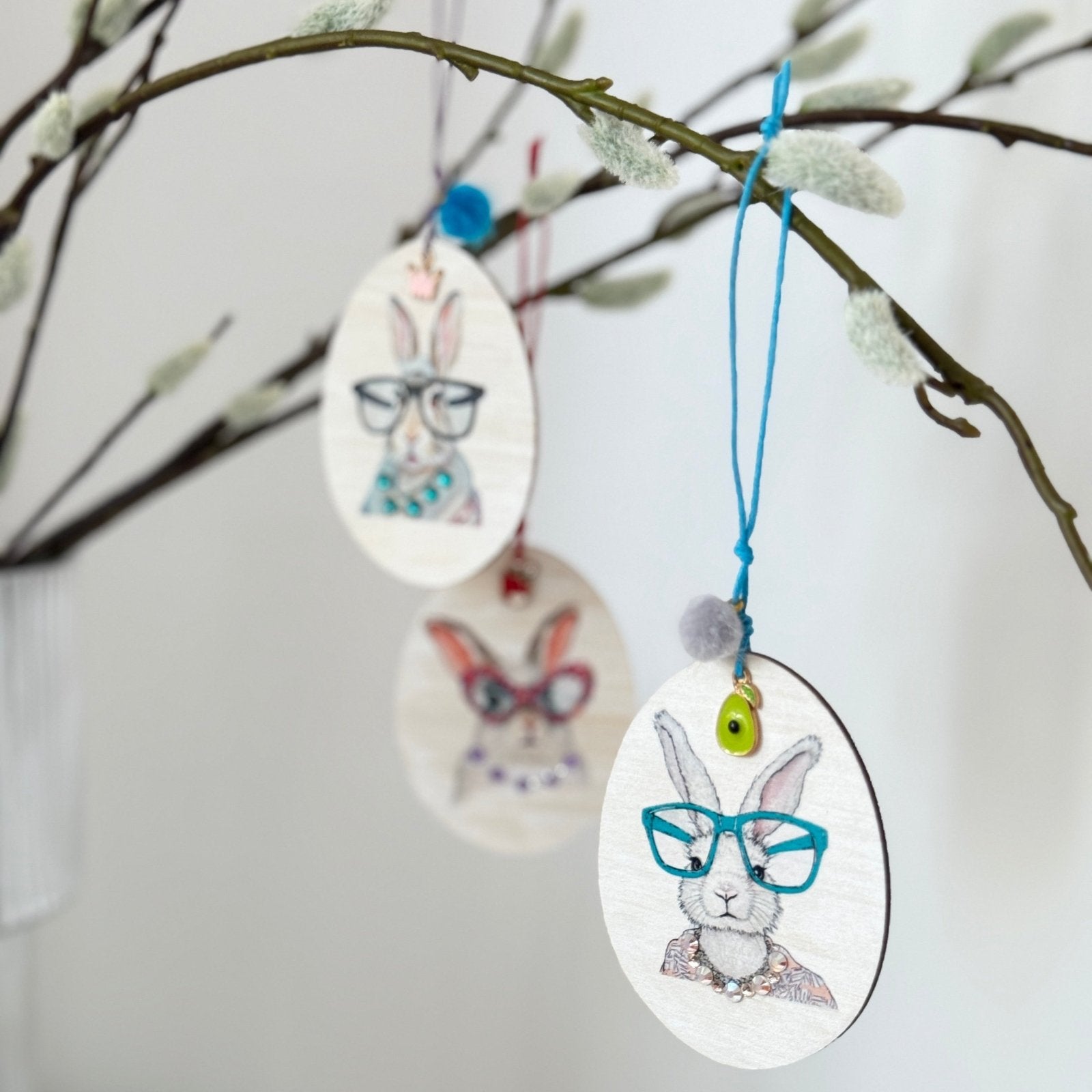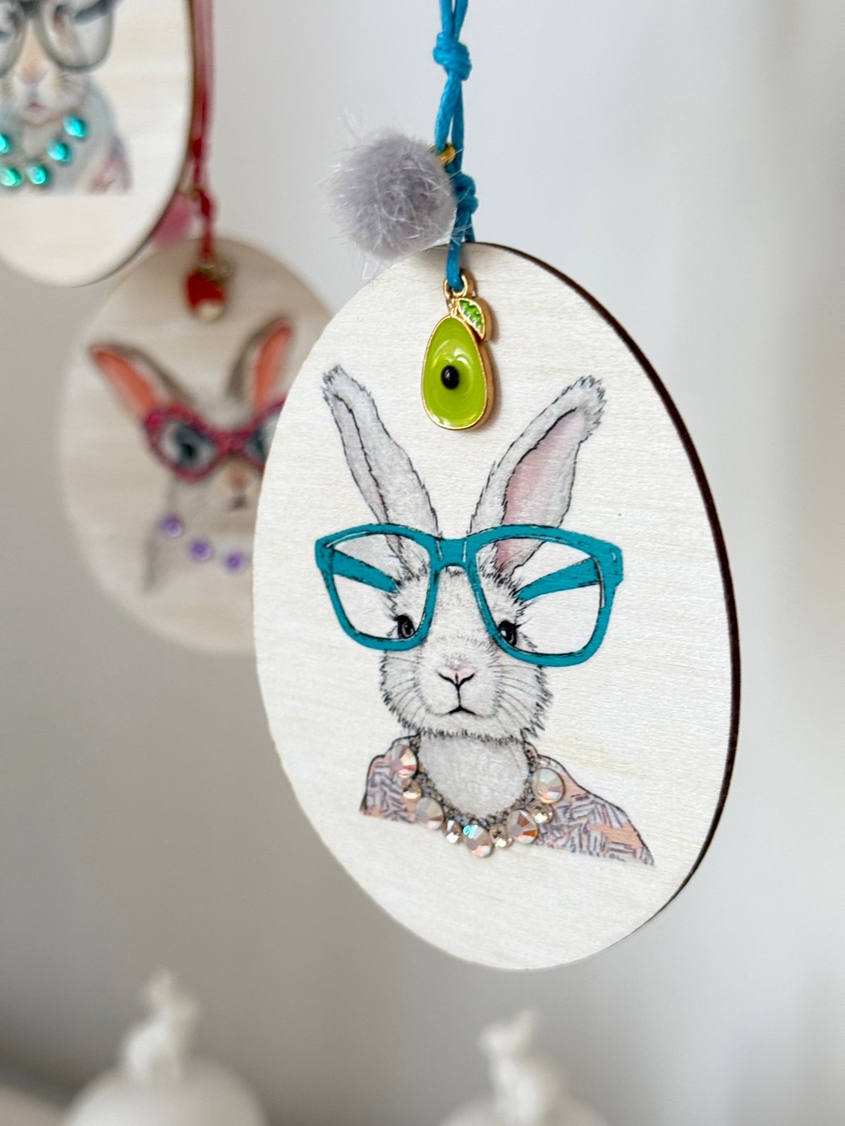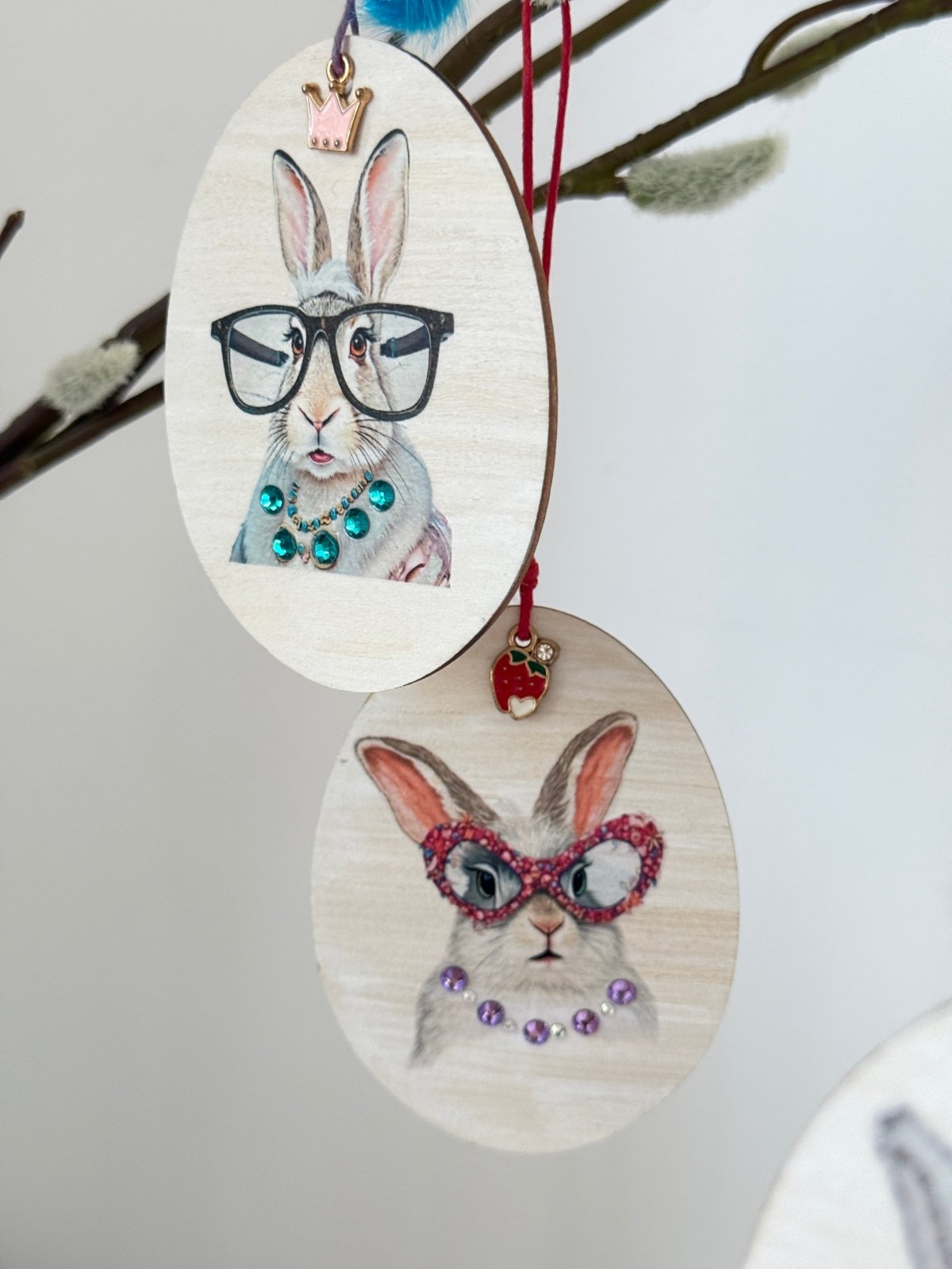 3er Set Classy Charms „Couture Bunny“, Holzanhänger mit Preciosa®