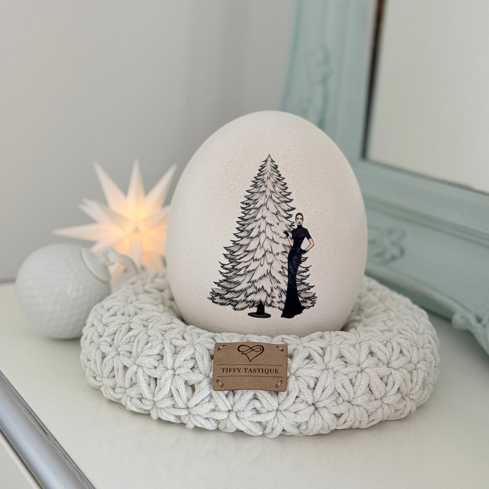 Straußenei "X-Mas in New York", inkl. Glam Häkel-Kranz von Tiffy Tastique