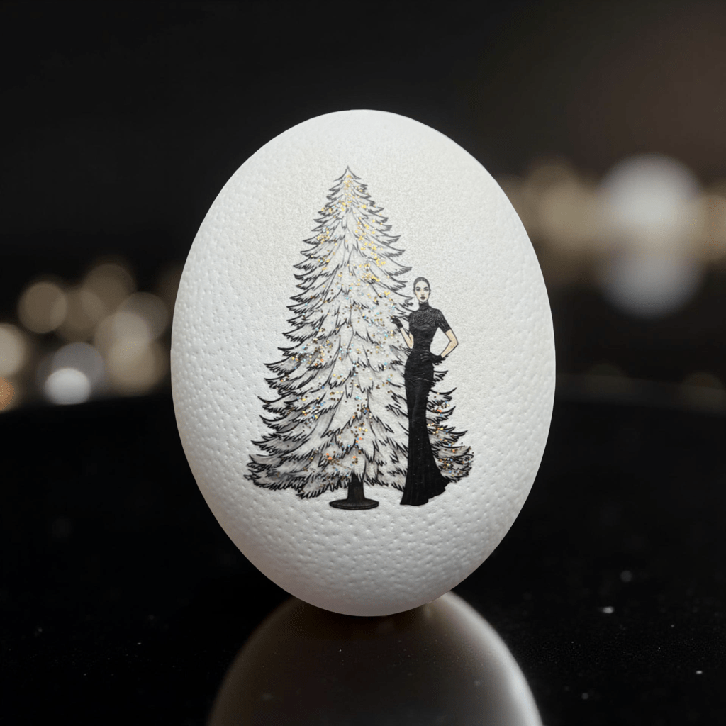 Dieses Straußenei erzählt von winterlichen Träumen, funkelnden Lichtern und dem Gefühl, dass selbst Schnee in New York Stil hat.