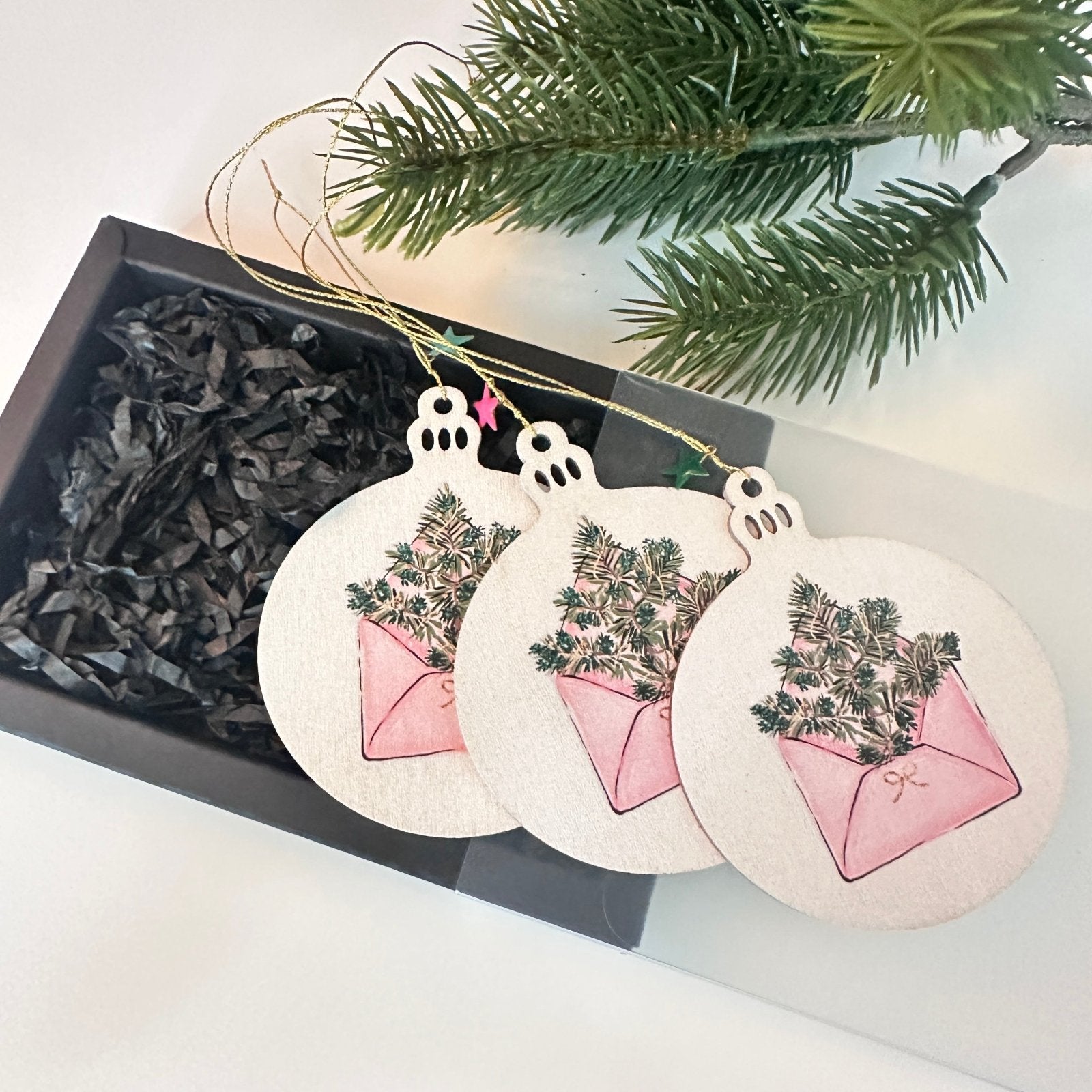 Diese Weihnachtspost kommt garantiert ohne Porto, aber mit ganz viel Gefühl. Zarte Umschläge voller Tannengrün – als hätten Engel persönlich kleine Liebesbotschaften an deinen Baum geschickt.