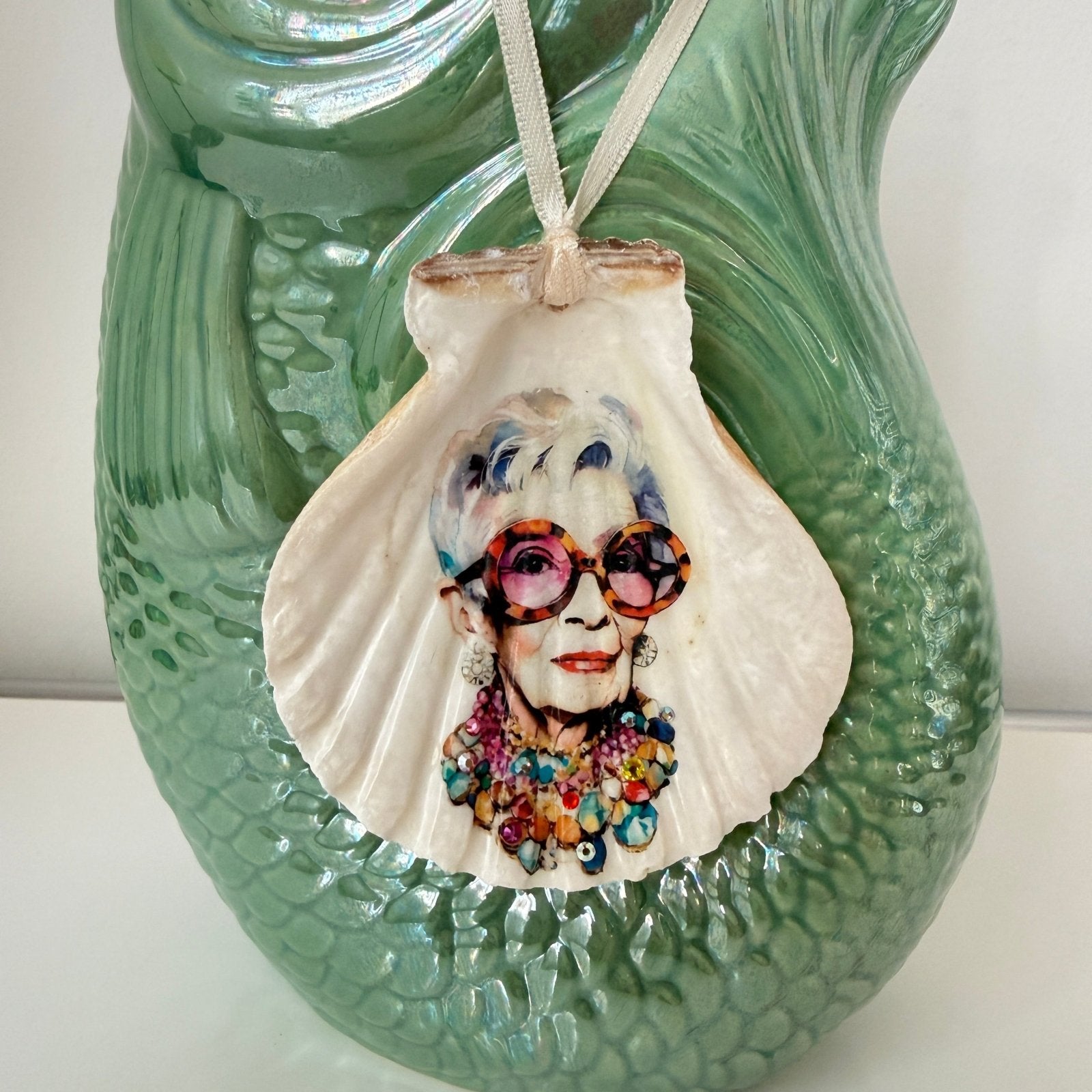 Handveredeltes Deko - Objekt: Coastal Charm „Madonnista", echter Muschelanhänger mit Preciosa® veredelt von ei - nzigartig