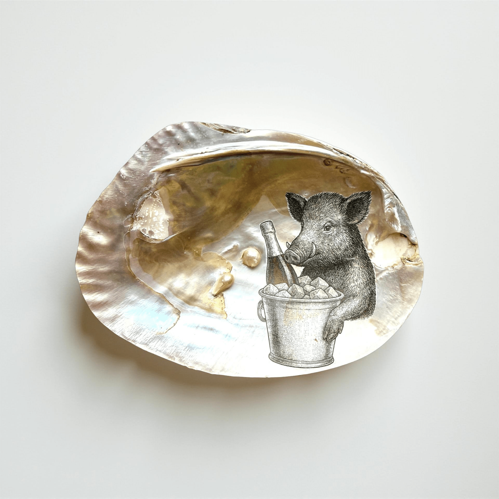 Was sie so besonders macht? Es sind die natürlich gewachsenen Perlen – keine eingesetzten Schmuckstücke, sondern echte Kalkperlen, die in der Muschel entstanden sind. Sie bleiben dort, wo sie gewachsen sind – unberührt, wie ein Geheimnis. Das macht jede Schale zu einem luxuriösen Einzelstück: authentisch, still und voller Bedeutung.