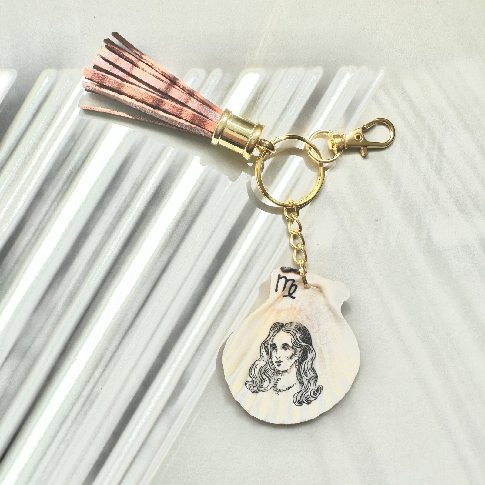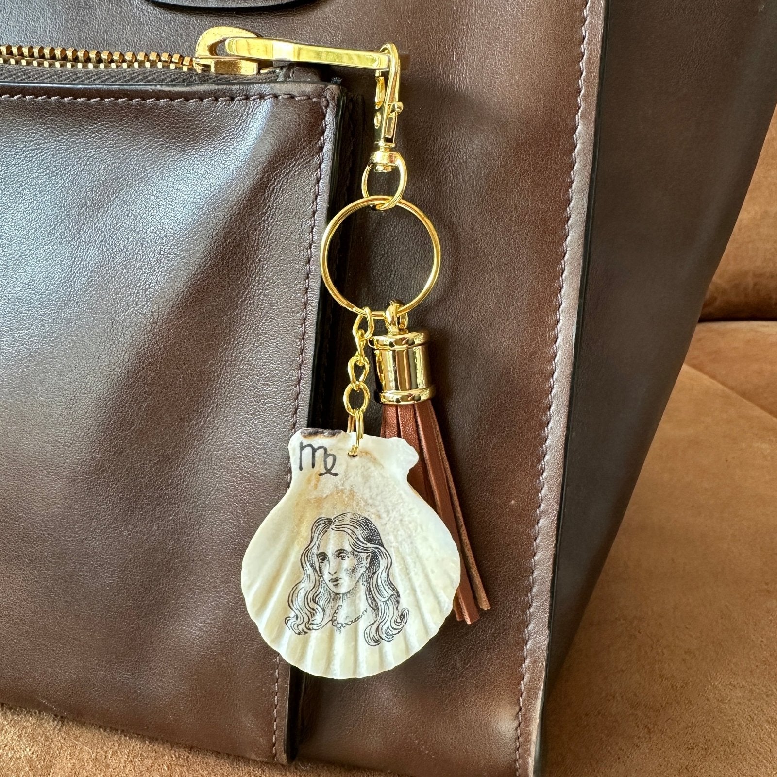 Taschen & Schlüssel-Anhänger "Jungfrau", goldfarbend, 2 Größen, 10 Quasten-Farben