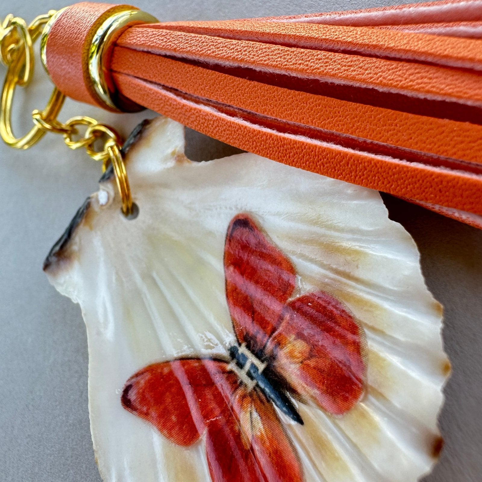 Taschen & Schlüssel-Anhänger "Orangenfalter", goldfarbend, 2 Größen