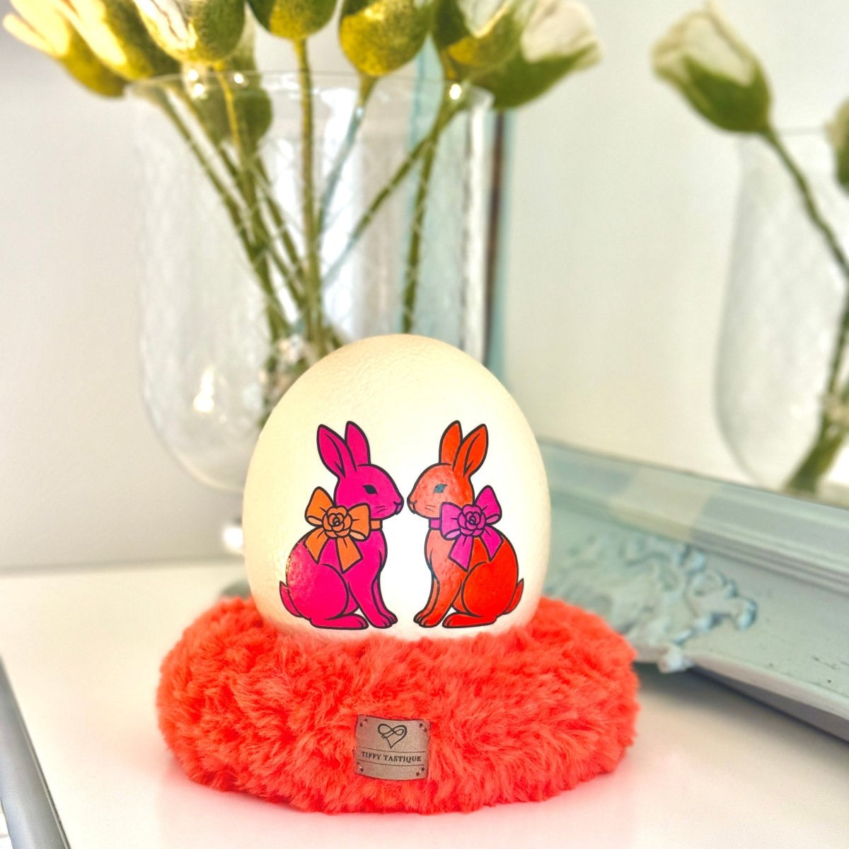 Straußenei "Schicky Bunny Paar - Orange Kiss", inkl. Fluffy-Kranz von Tiffy Tastique