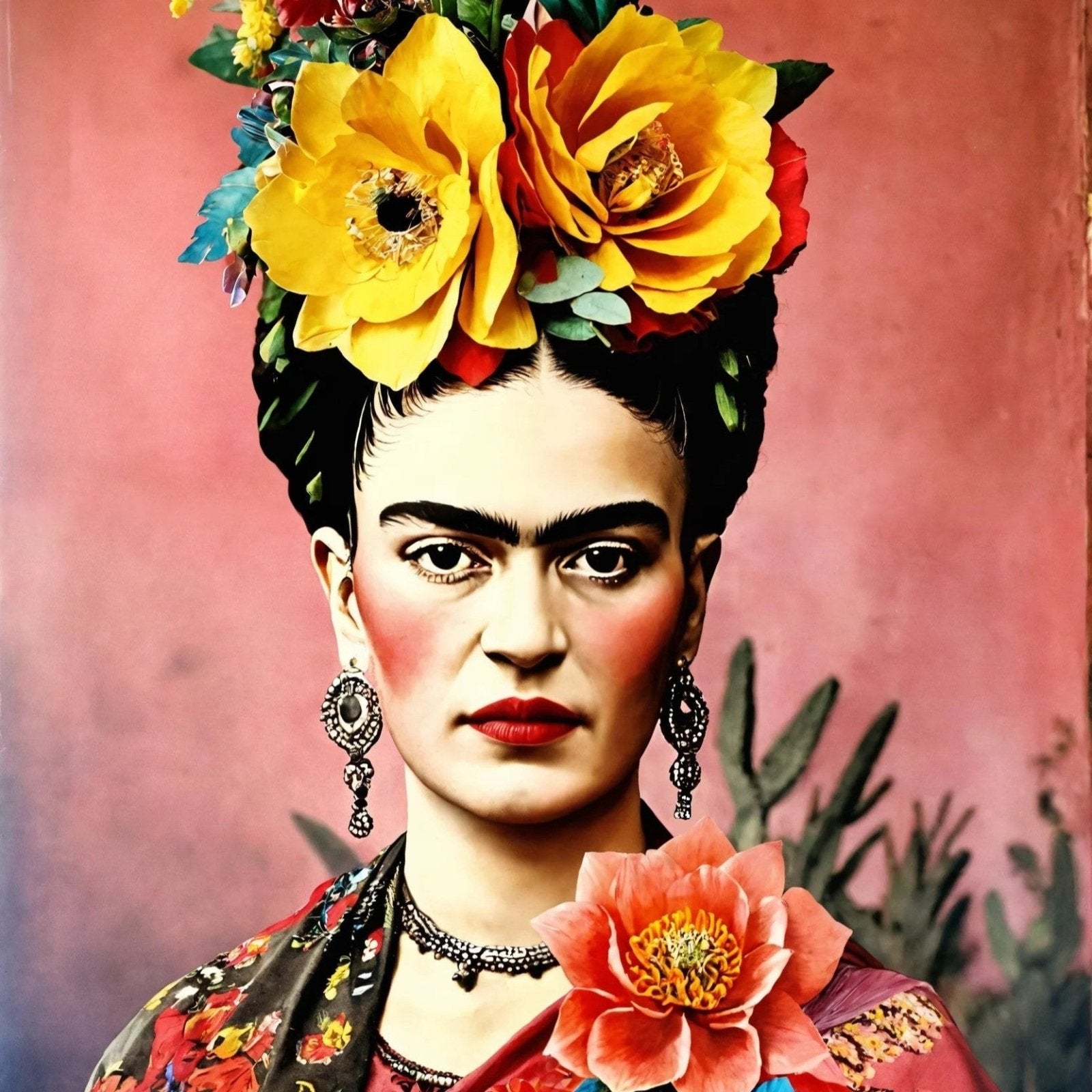 Eine wunderschöne, starke mexikanische Frau mit Blumen im Haar.