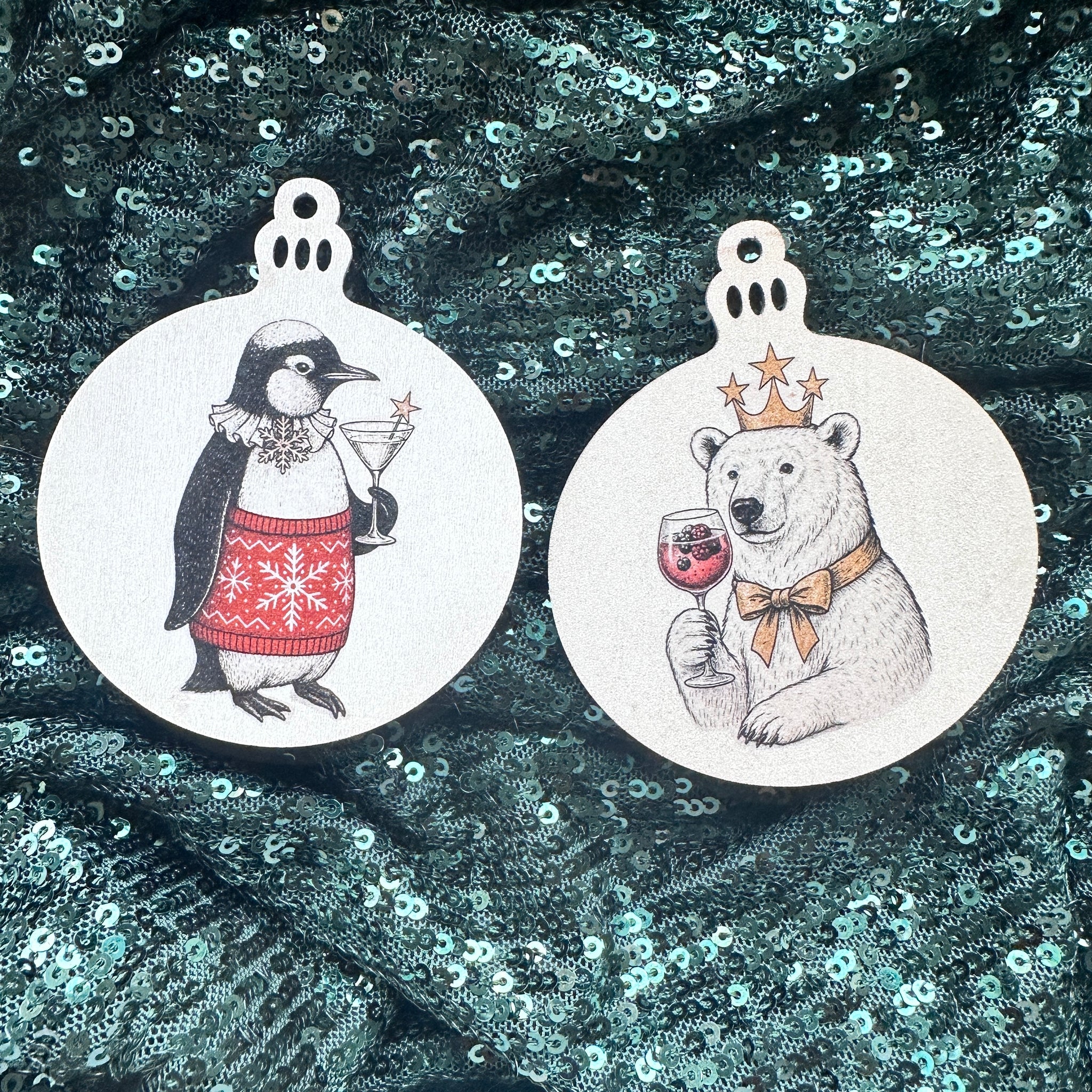 Ein Eisbär mit Weinglas, ein Pinguin mit Martini: mehr Winter-Glam geht nicht.