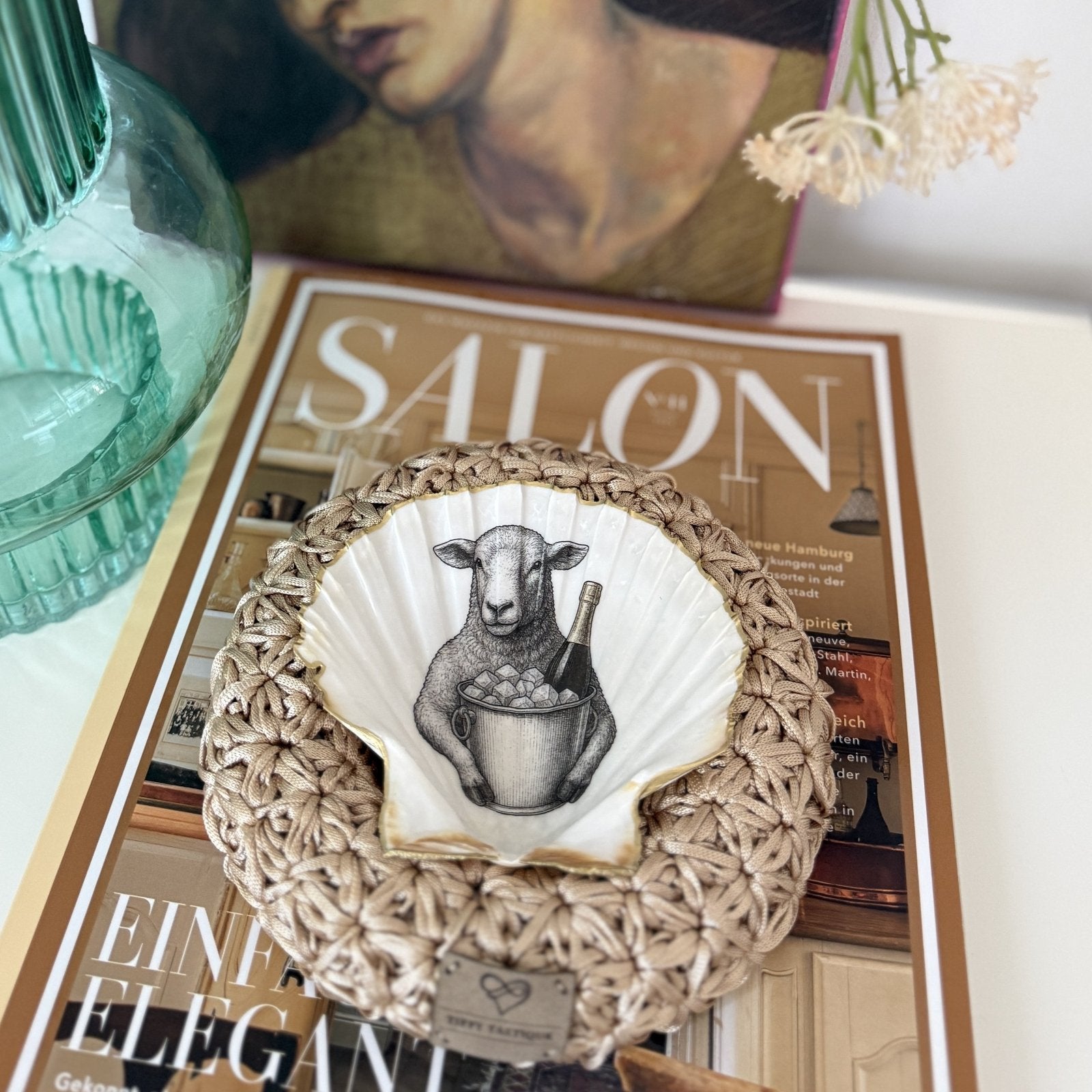 Dekoschale "Das Perlmutt-Schaf", inkl. „Infinity- Häkel-Kranz von Tiffy Tastique