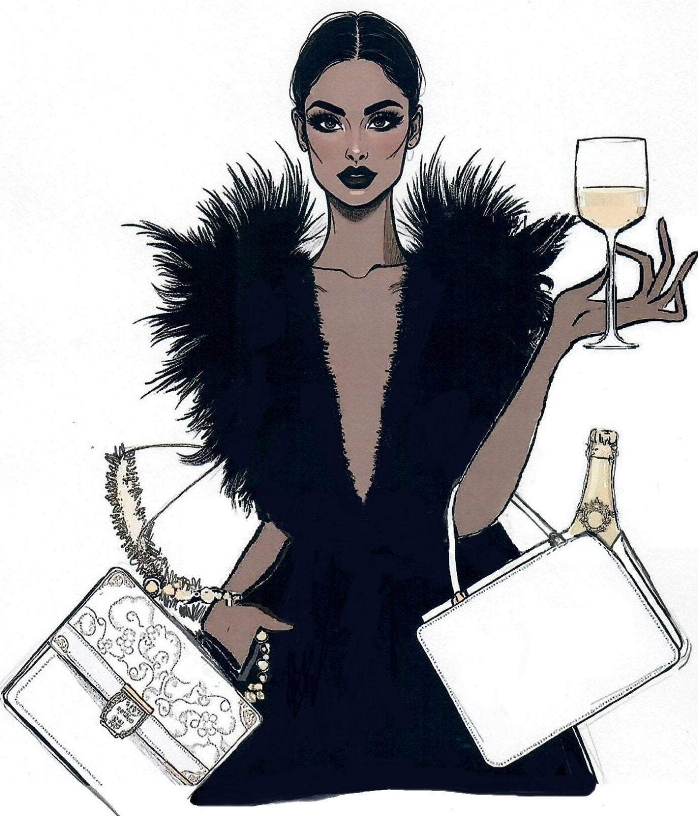 Ein elegantes Fashion-Porträt mit Champagnerglas: selbstbewusst, ruhig und modern.