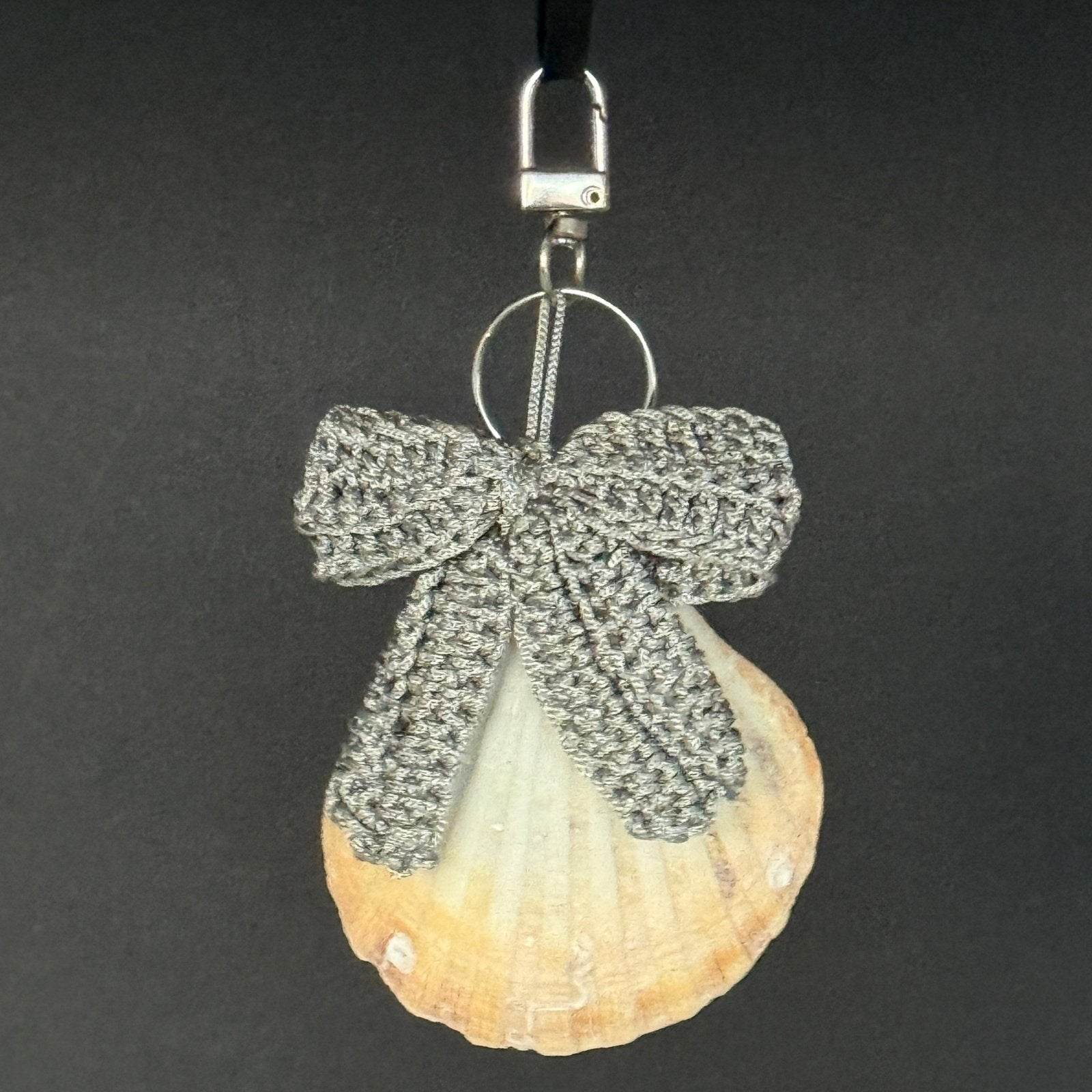 Handveredeltes Deko - Objekt: Beachwalk "Champ Season", echte Muschel inkl. Häkel - Schleife I SILBER von Tiffy Tastique von ei - nzigartig Open image lightbox