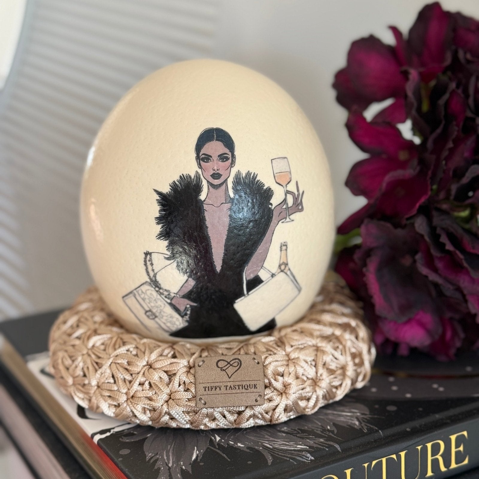 Echtes Straußenei mit dekorativer Fashion-Applikation