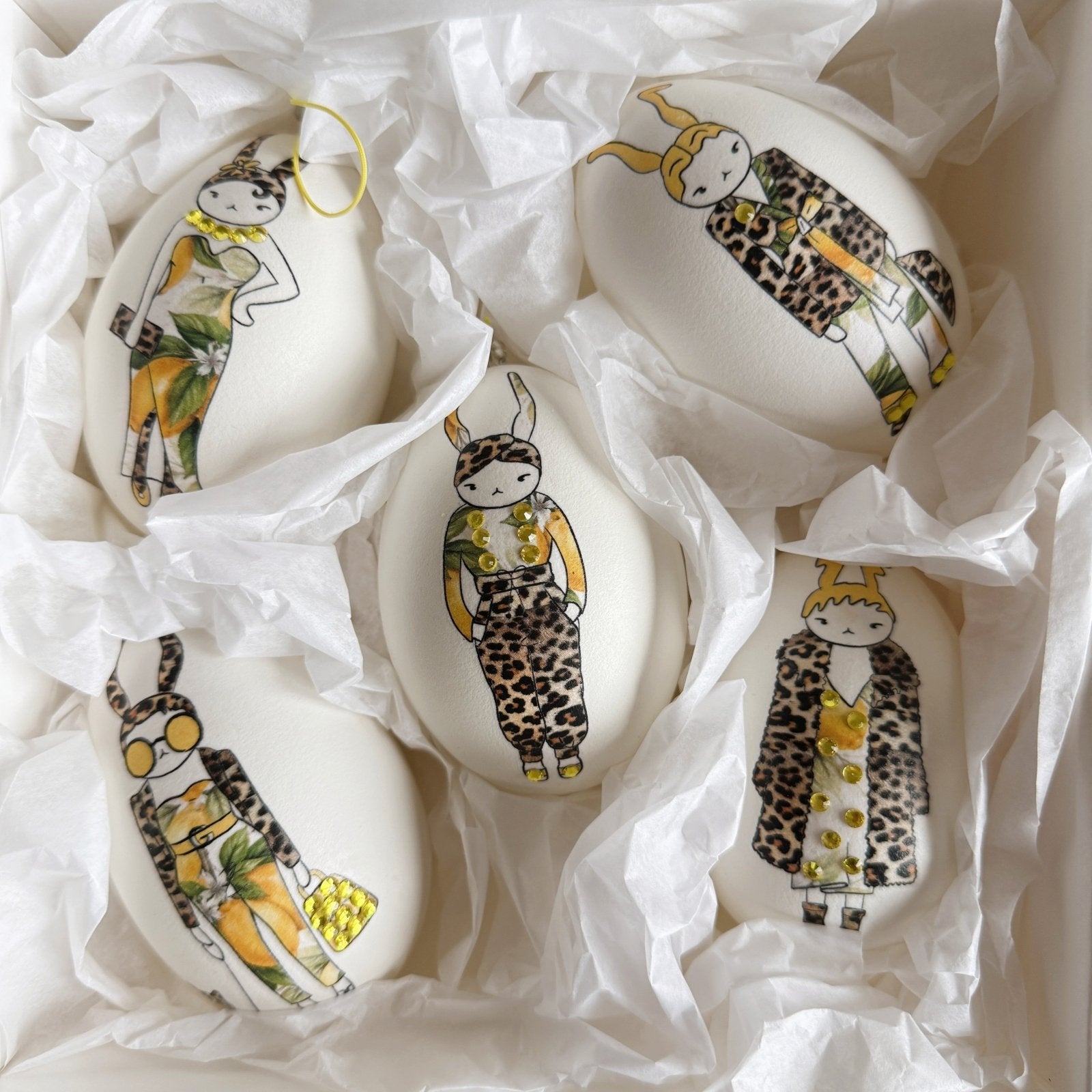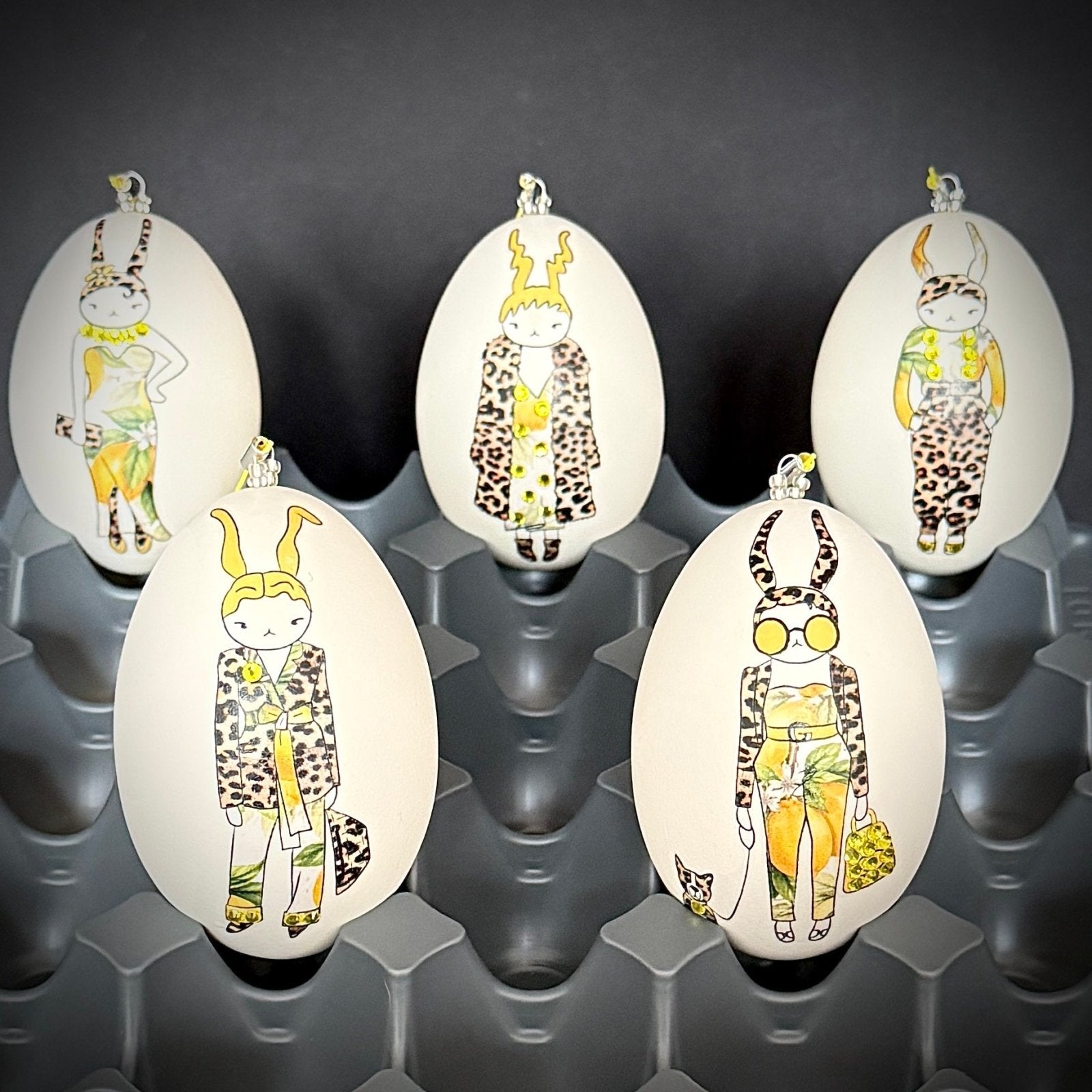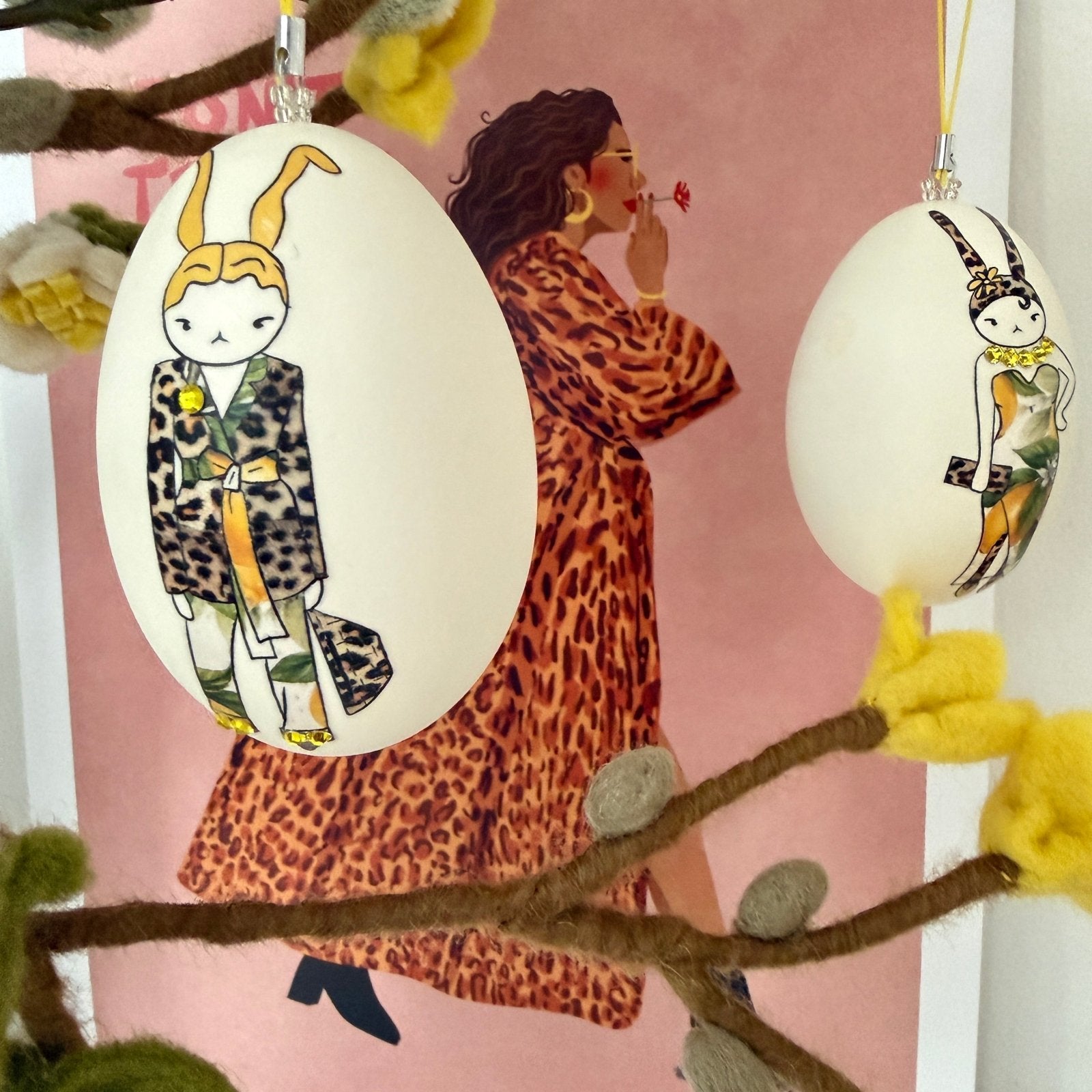 Trendy artwork: Our Easter eggs are not just Easter eggs, but true works of art. Each egg is decorated with a bitchy bunny lady, styled in distinctive looks from renowned design labels.