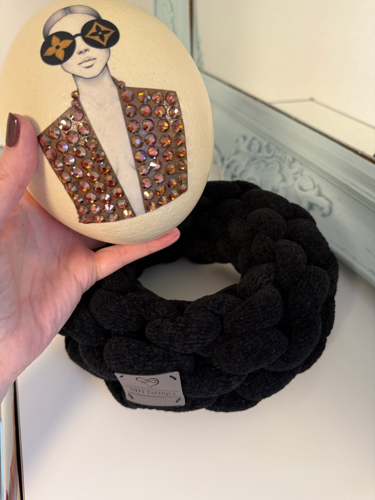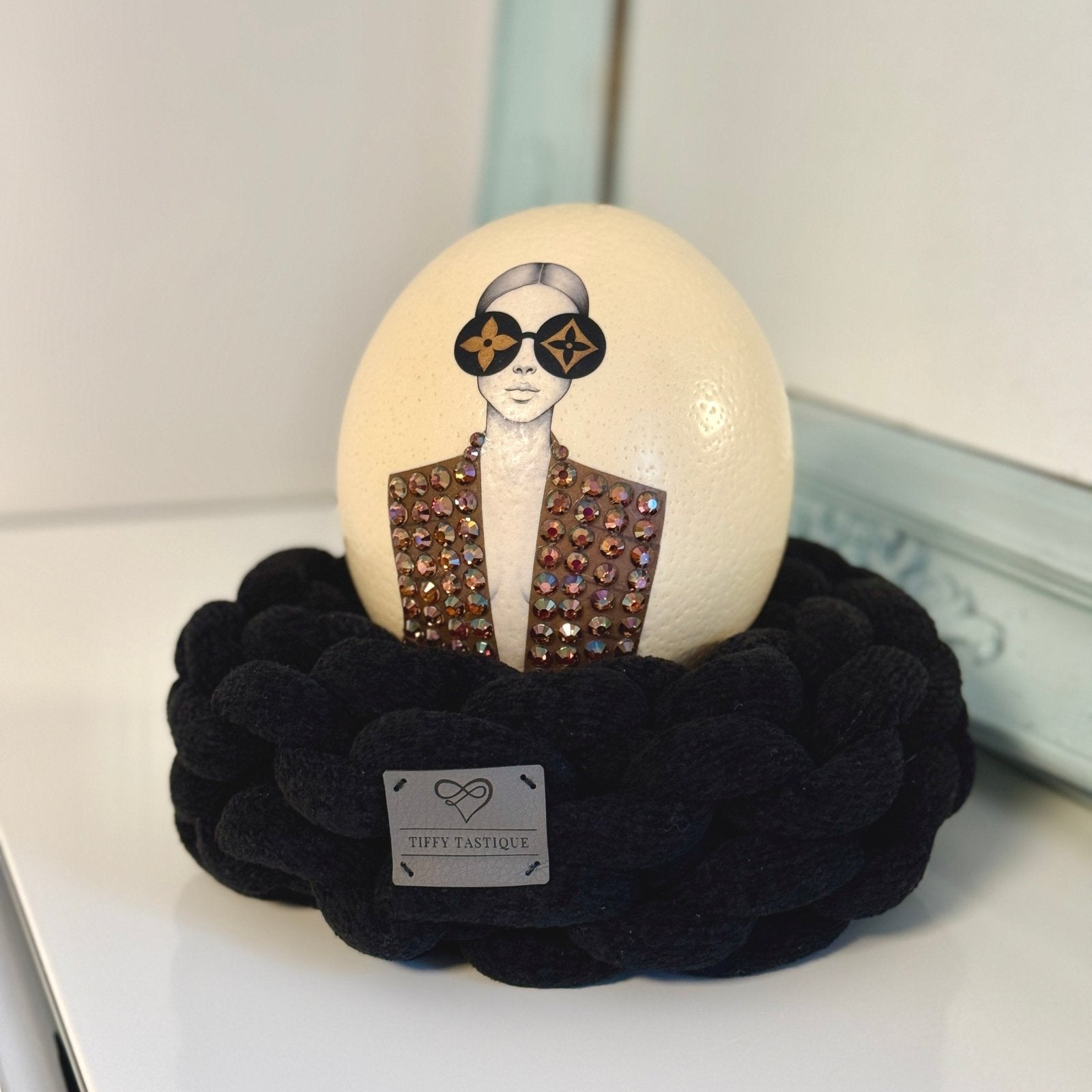 Straußenei "Louisa Glam", inkl. Strick-Kranz von Tiffy Tastique