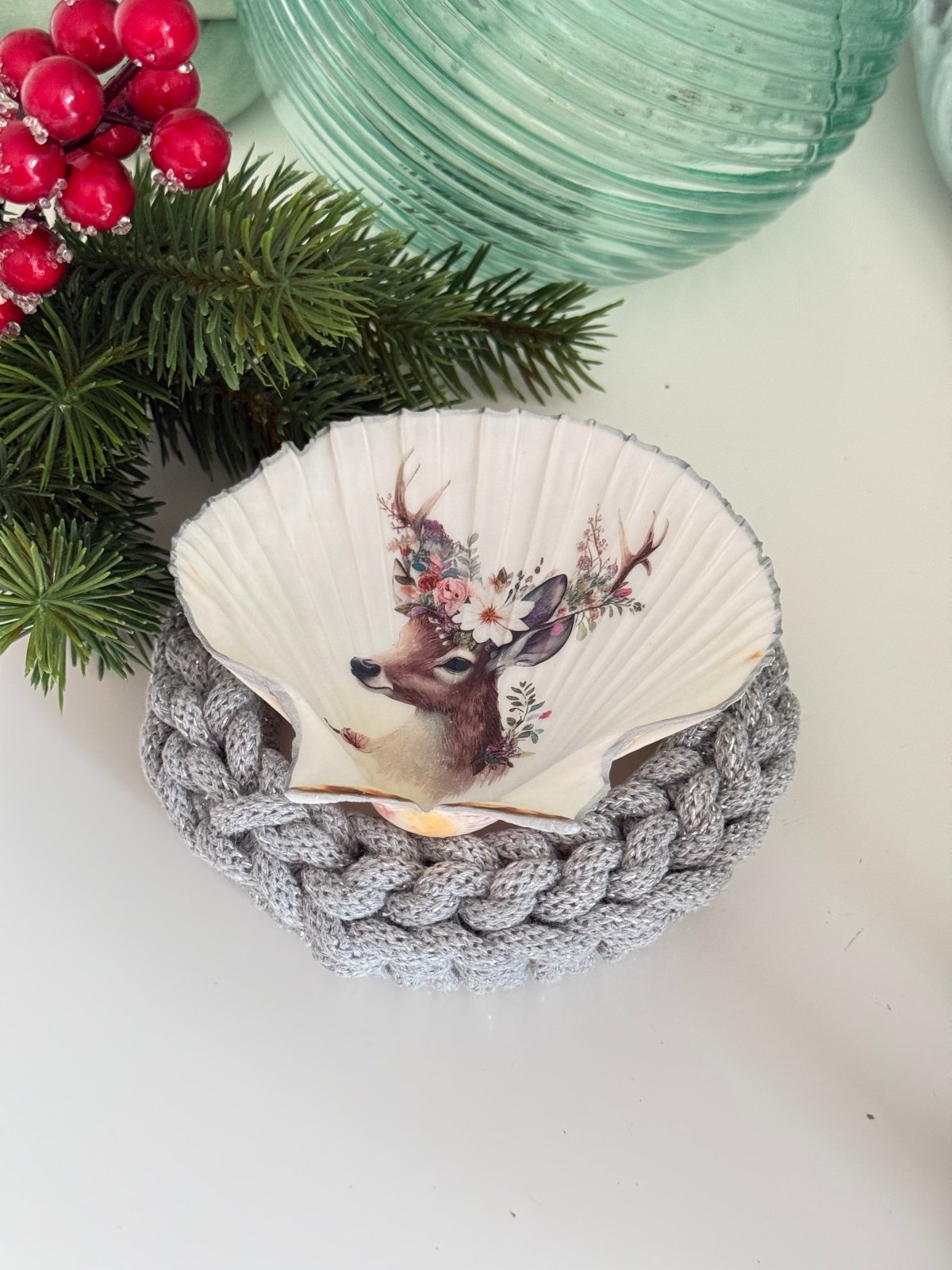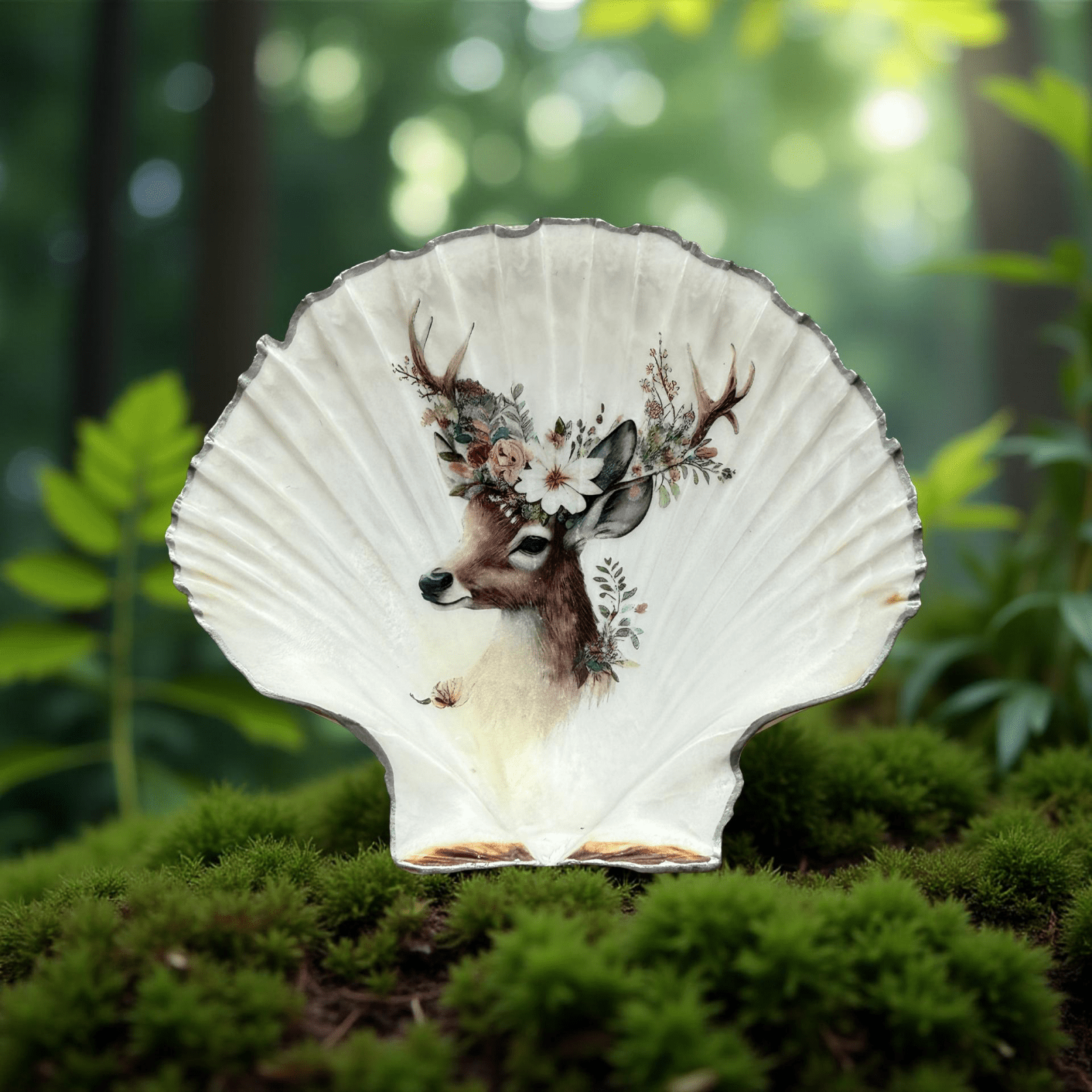 Decorative shell made from real scallop shell - A hip deer with floral decorations to give your home a festive flair: