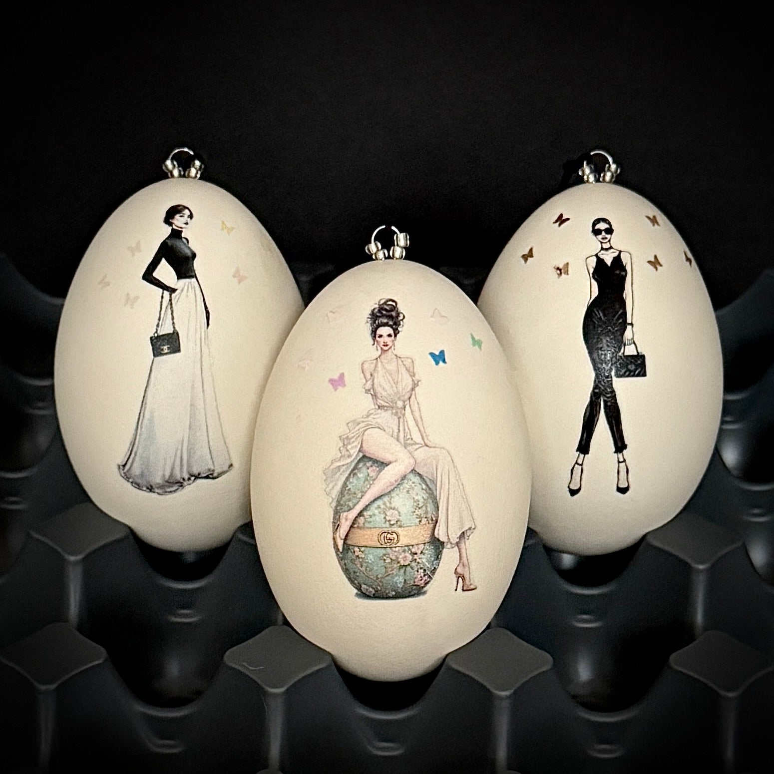 Trendy artwork: Our Easter eggs are not just Easter eggs, but true works of art. Each egg is decorated with a bitchy bunny lady, styled in distinctive looks from renowned design labels.