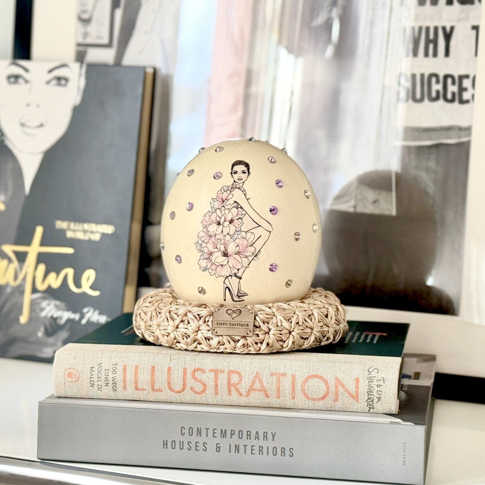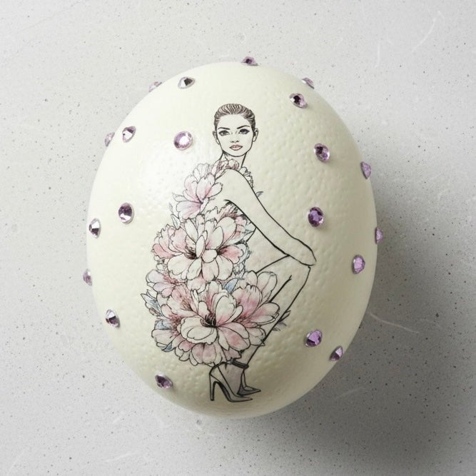 • Echtes Straußenei mit dekorativer Fashion-Applikation